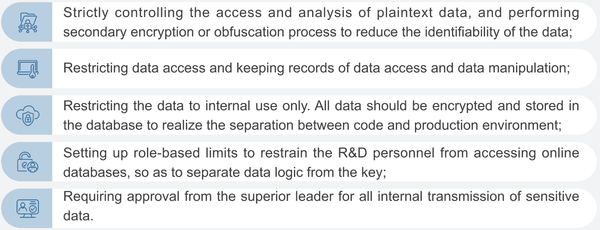 The Company always desensitizes users' personal information, strictly limits the usage of users’ information, and collectively archives it after use. To better ensure the security of data processing, the Company has set up role-based limits according to the actual business, maximizing the security of private data. For instance, the R&D personnel in charge of coding encryption and decryption programs are denied direct access to the encrypted database, the key to which is kept by the O&M personnel.