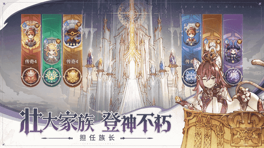 你将体验到纯正王道的冒险剧情,,在这个被伪神入侵的凯斯世界,,,成神是每一位强者的终极目标,,玩家作为守护者家族的族长,,,,在寻回六大种族成员,,,,击退威胁凯斯世界的伪神后,,,,即有机会带领家族晋升为神,,,,登神不朽。。。